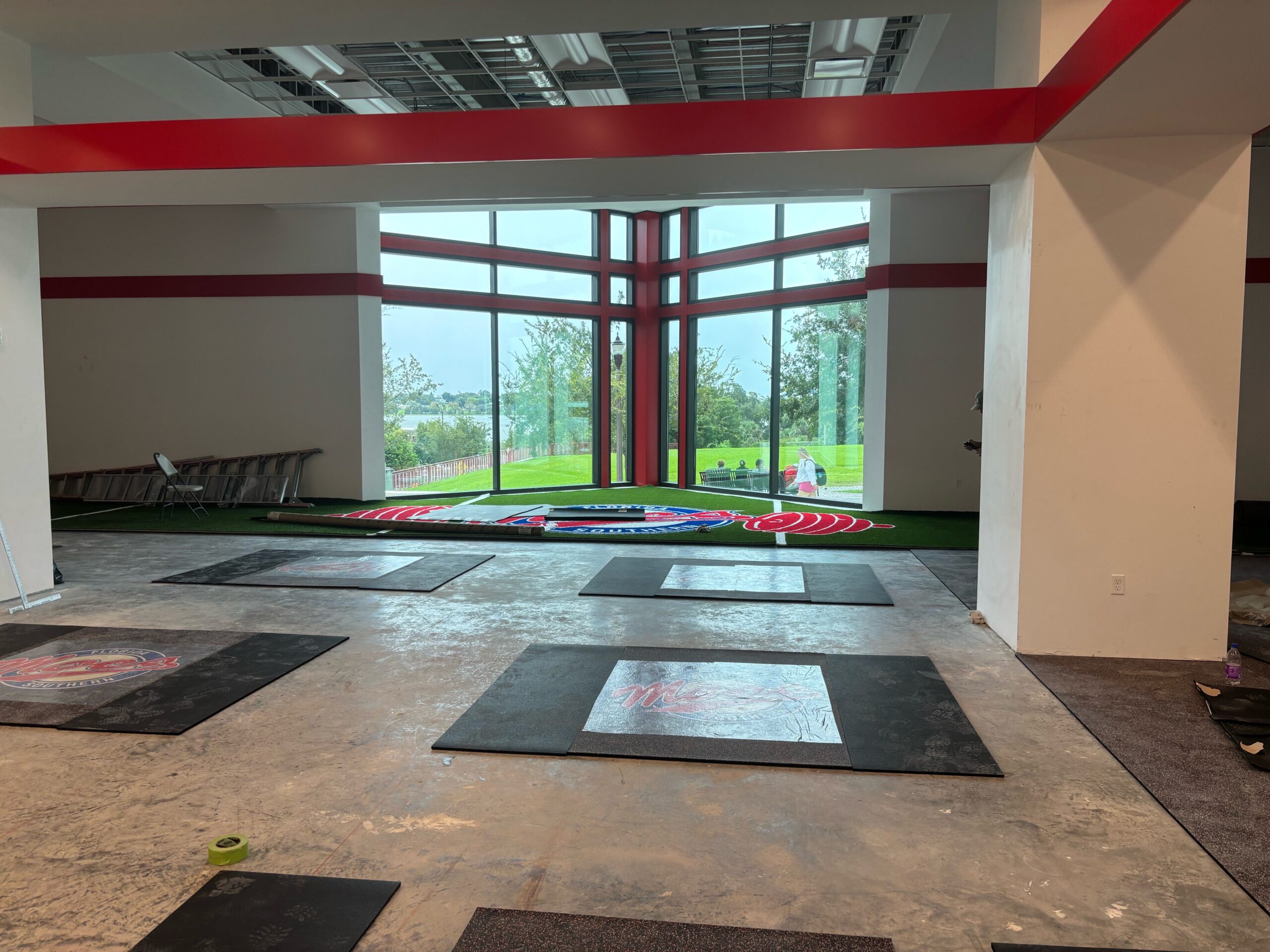 The inside of the facility remains unfinished, with the film room being mostly complete and the weight room just needing the equipment.