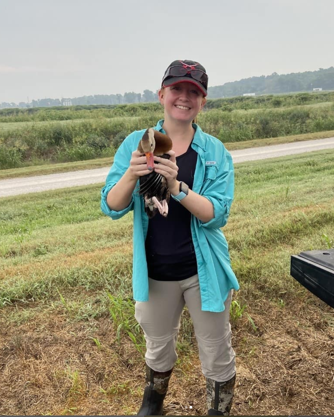 Caroline Bryant | The Southern Newspaper Photo courtesy of Kaitlin Gallagher | Gallagher releasing black bellied whistling ducks after banding them and doing nest checks.