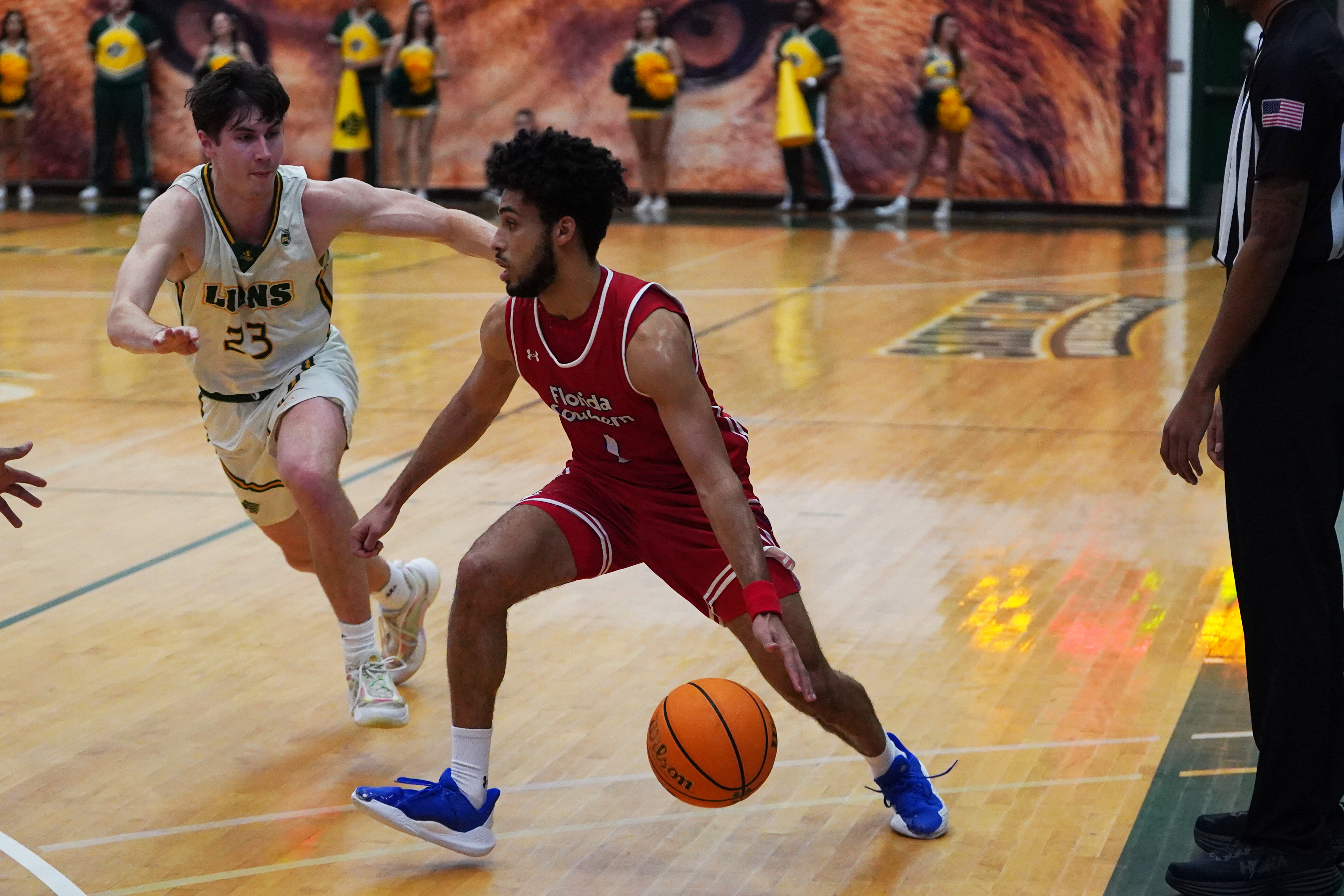 Dominick Denny dribbles around his opponent. | Photo courtesy of FSC Athletics