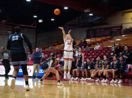 The Women were ahead the entire game never slipping to the Sailfish, maintaining a double-digit lead almost the entire second half. Senior Jensen Blassage also earned her 1,000 college career point. She is the 21st women’s player to make this achievement.