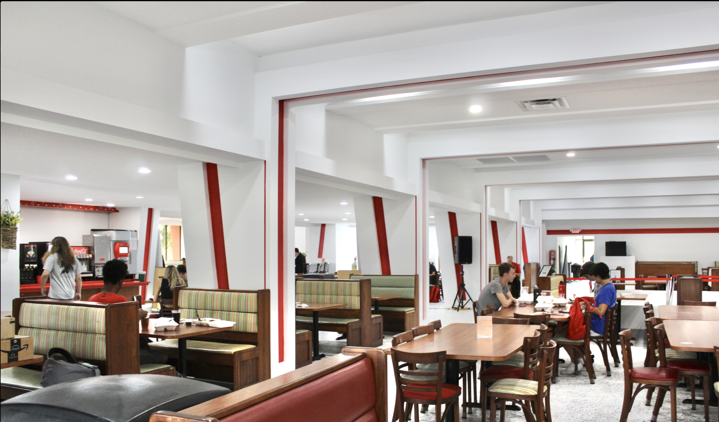 In Wynee’s Bistro, also known as the cafeteria, recent renovations have transformed the Bistro into a brighter space with freshly painted white and red walls. Other changes in the renovation include fewer walls and new flooring.